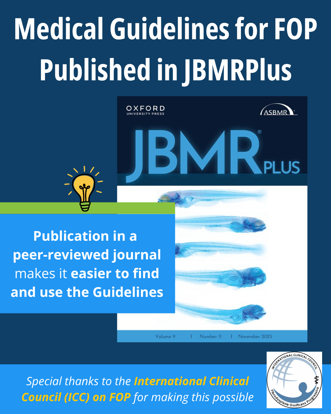 The IFOPA is pleased to share that the International Clinical Council (ICC) on FOP has published the Medical Guidelines for FOP in JBMRPlus.